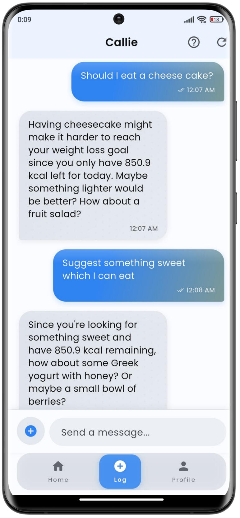 Track calories, carbs, protein, fat, and more with ease. Callie’s massive food database and barcode scanner make logging quick and effortless.🤔 Talk to Callie Before You Eat
